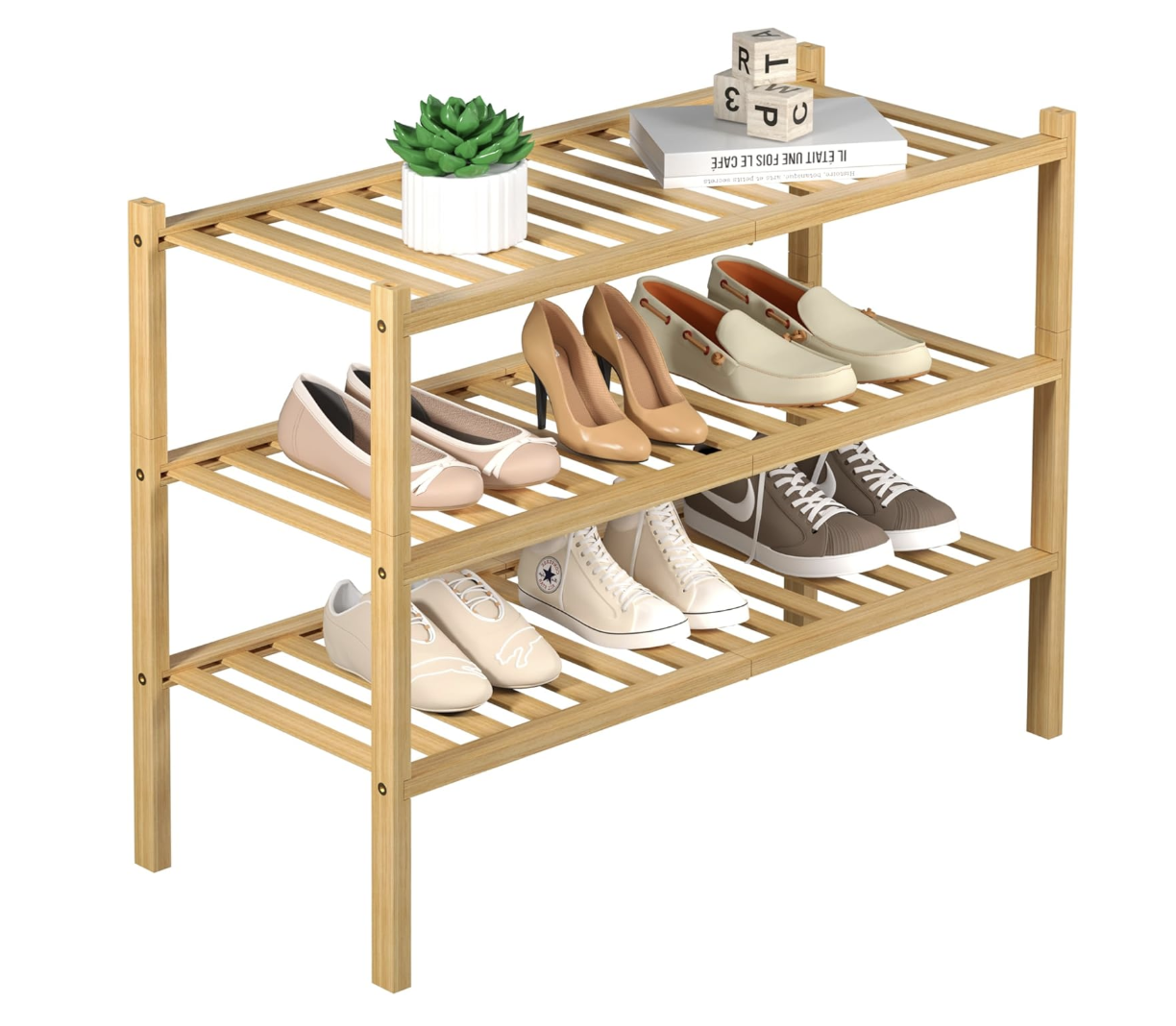 3 Tier Bamboo Shoe Rack for Closet Free Standing Wood Shoe Shelf Storage Organizer for Entryway Small Space Stackable 27″x11″x20″ (Natural)