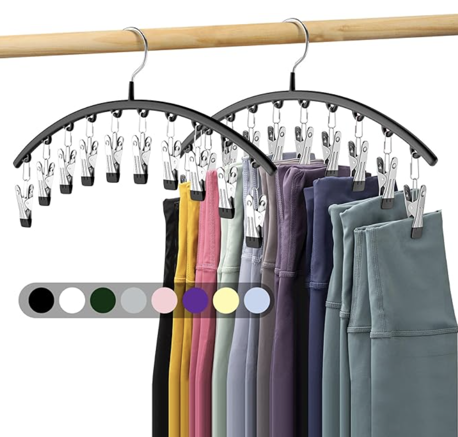 Legging Organizer for Closet, Metal Yoga Pants Hangers 2 Pack w/10 Clips Holds 20 Leggings, Space Saving Hanging w/Rubber Coated Closet Organizers and Storage, Black