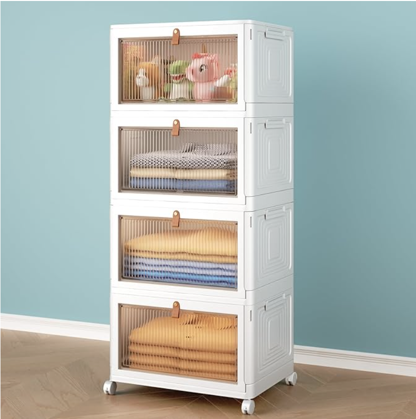 4 Tier Storage Bins with Lids, 23QT Stackable Closet Organizers and Storage with Wheels, Collapsible Storage Boxes, Foldable Plastic Storage Containers for Home,Office