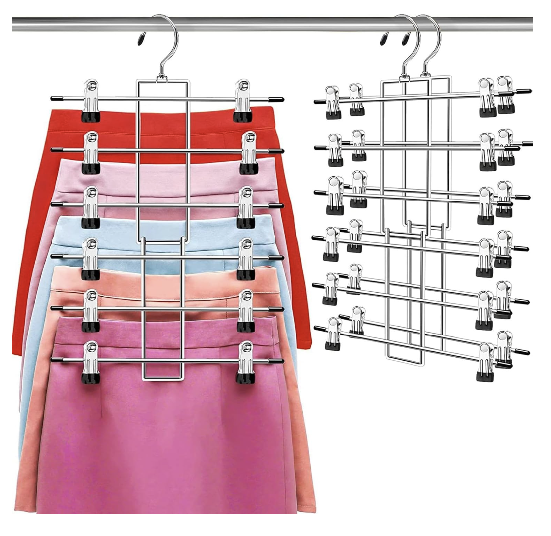 Hangers,Pants Hangers,Space Saving Hanging Closet Organizer – 6 Tiers Skirt Hangers with 360° Swivel Hook,Hangers Space Saving with Clips,Closet Organizers and Storage -Clothes Hangers- 2 Pack