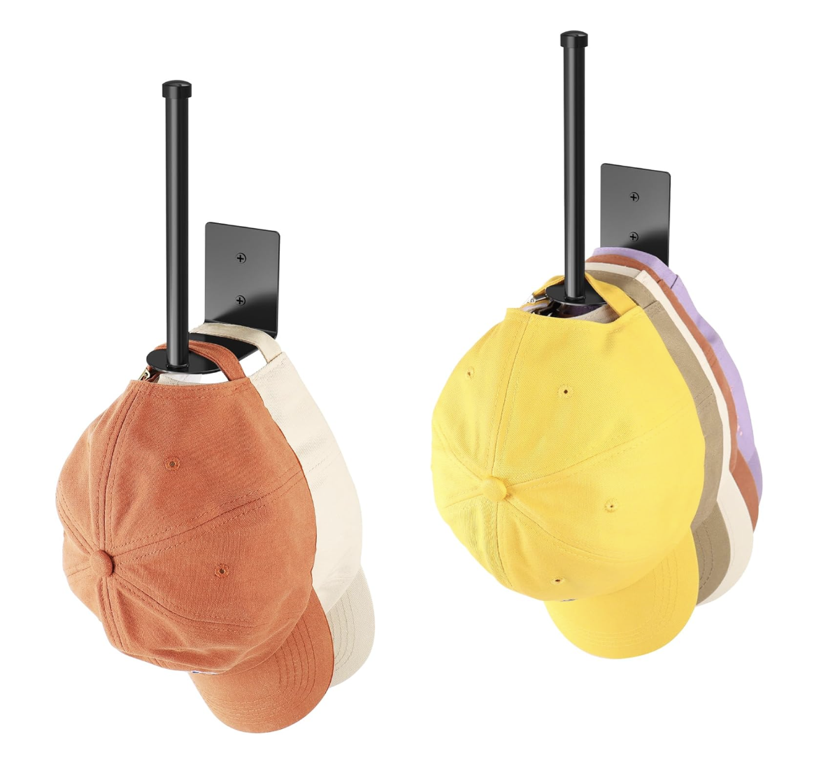 2 Pack Hat Racks for Baseball Caps, Stainless Steel Hat Organizer for Baseball Cap, Hat Holder Storage Organizer, Hat Hanger Strong Adhesive/Wall Drilled for Door, Bedroom, Closet(Black 6 in)