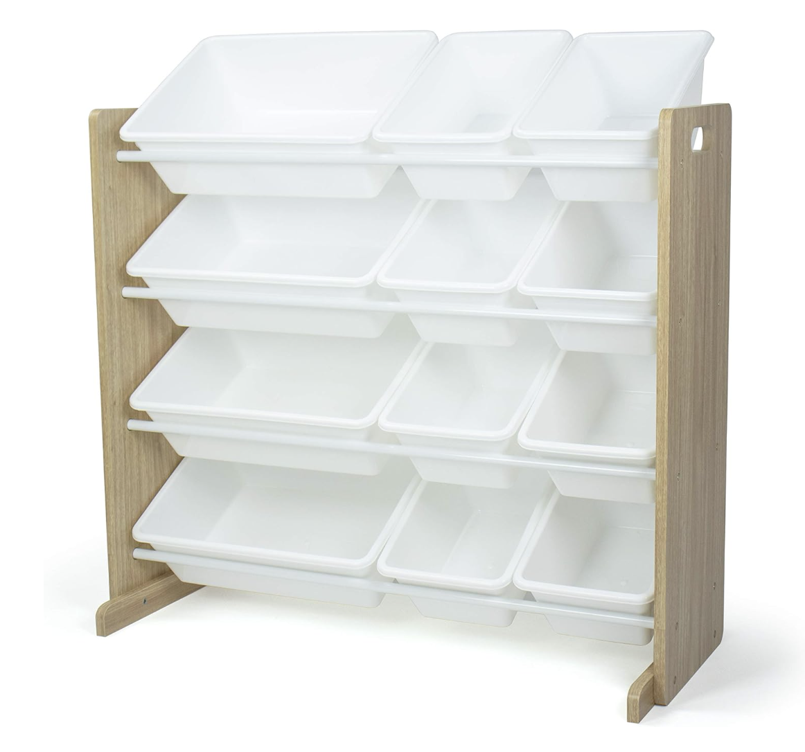 Humble Crew, Natural Wood/White Kids Toy Organizer with 12 Storage Bins