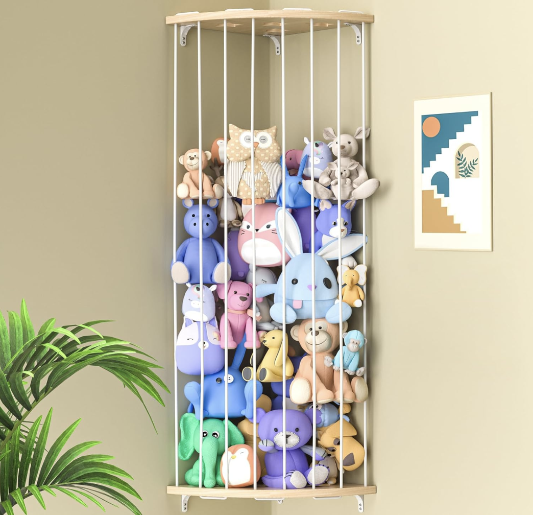 Stuffed Animal Storage Wood Corner Plush Toys Holder with Star Pattern, Length Adjustable Hanging Stuffed Animal Toy Organizer Shelf for Nursery Play Room Bedroom Kid Room