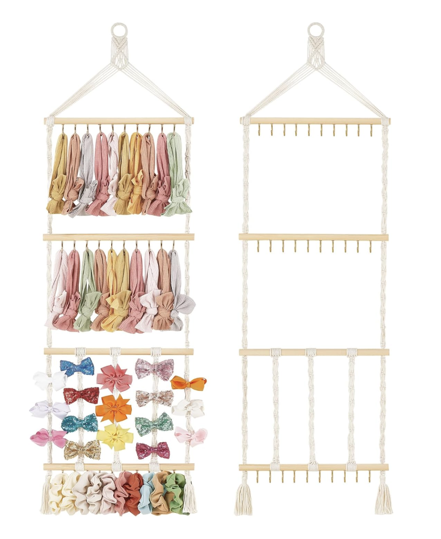 Headband Holder Boho Hair Bow Organizer for Girls Macrame Bow Hanger with 30 Hooks Bow Holder for Nursery Baby’s Room Hair Accessories Organizer Wall Hanging Decor for Bedroom Bathroom