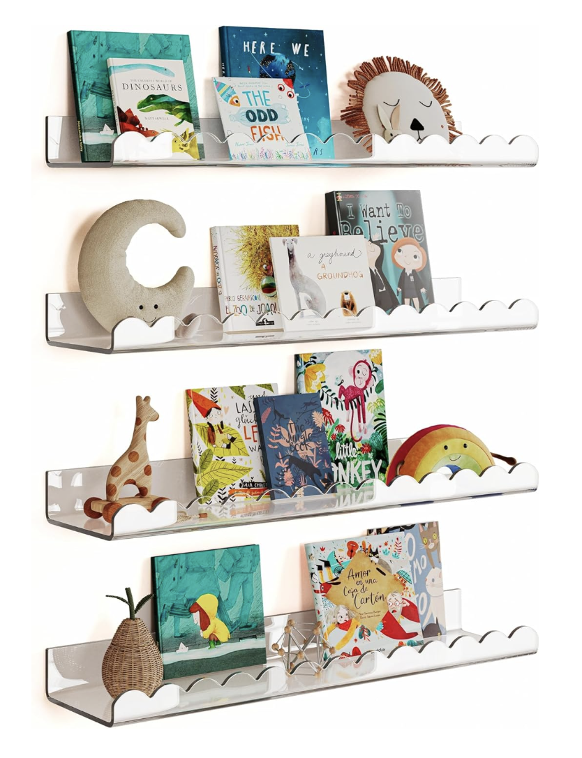 4 Pack Clear 15.7 Inches Acrylic Book Shelf for Kids Room, Floating Kids Book Shelves for Wall, Nursery Book Shelves, Magazine Rack, Picture Ledge (Clear, 15.7)